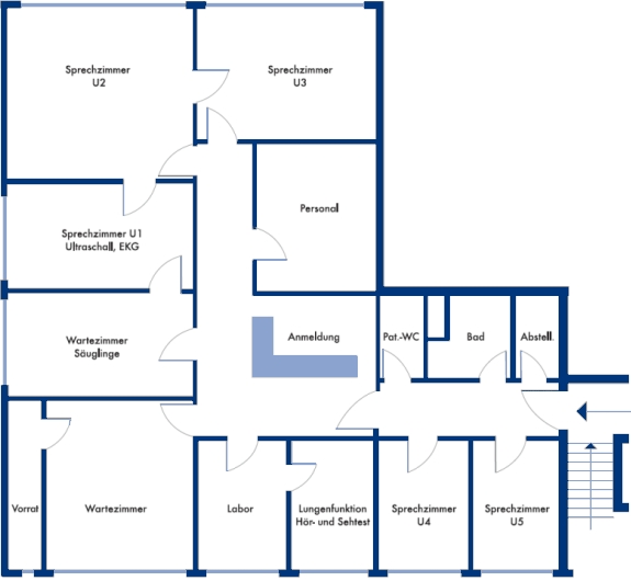 Weitere Termine nach Vereinbarung. Telefon (05 31) 84 81 81 ![]() Erreichbarkeit In aller Regel sind, bedingt durch den Schichtdienst, zwei unserer Ärzte gleichzeitig in der Praxis anwesend. Ein längerer Praxisurlaub mit Praxisschließung ist nicht vorgesehen. Ausnahmen sind Fortbildungen aller drei Ärzte an einzelnen Tagen. Termine Vereinbaren Sie bitte telefonisch oder persönlich einen Termin mit uns. Sollten bereits alle Termine vergeben sein, bitten wir Sie um Verständnis, dass in diesem Fall längere Wartezeiten entstehen, da angemeldete Patienten Vorrang haben. Halten Sie die mit uns vereinbarten Termine bitte ein! Wir planen bis zu 30 Minuten und in Einzelfällen auch mehr Zeit für unsere Patienten und deren Eltern ein – dafür entstehen auch Kosten (z.B. für das Personal, die Räumlichkeiten etc.). Sollten Termine nicht wahrgenommen werden können, bitten wir Sie, diese spätestens am Vortag abzusagen. Die Praxis ist berechtigt, bei unentschuldigtem Versäumen eines Termins eine Privatrechnung zu erstellen. Eine Bitte an die Eltern von Säuglingen: Aus ökologischen Gründen verzichten wir auf Papierunterlagen für unsere Untersuchungsliegen. Wir möchten Sie daher bitten, eine eigene Unterlage mitzubringen. Somit helfen Sie uns dabei, den anfallenden Papiermüll deutlich zu reduzieren. Zudem wird sich Ihr Kind auf einer eigenen Unterlage sicher wohler fühlen als auf hartem Papier. Das eigene Wartezimmer und die Tatsache, dass die Untersuchungen von Säuglingen in der Regel direkt im angrenzenden Raum stattfinden, sorgen für Ihren zusätzlichen Komfort. Hausbesuche nach Voranmeldung: Innerhalb der Praxiszeiten werden nach Voranmeldung auch Hausbesuche durchgeführt. Beachten Sie bitte, dass die in der Praxis zur Verfügung stehenden diagnostischen Möglichkeiten nicht im selben Ausmaß zu Hause zu realisieren sind. Eine optimale Beurteilung des Krankheitszustandes kann in einigen Fällen nur in unserer Praxis erfolgen, z.B. für den Fall, dass Ultraschall, EKG, Urinutersuchung etc. notwendig sind. Daher sollten Hausbesuche lediglich den Fällen vorbehalten sein, die einen Transport des Erkrankten in die Praxis nicht ermöglichen. Setzen Sie sich im Zweifelsfall mit uns in Verbindung, damit wir die beste Verfahrensweise mit Ihnen besprechen können. Dringende Fälle/Notfälle: Für Notfälle werden täglich Reservetermine bei den Ärzten der Praxis freigehalten. Termine für dringende Fälle/Notfälle werden kurzfristig eingeplant. Dringende Fälle und Notfälle sind beispielsweise: - Säuglinge mit Fieber oder wiederholtem starken Erbrechen, ggf. mit plötzlichem Gewichtsverlust - heftige Durchfälle - komplette Trink- und Nahrungsverweigerung - anhaltend starkes Schreien bei vermuteten Schmerzen - Nicht beeinflussbares hohes Fieber - Ohrenschmerzen, unklare starke Bauchschmerzen (ggf. mit Erbrechen) - Ständiger Husten und/oder Atemnot bei Vorgeschichten von Asthma oder wiederholten spastischen oder obstruktiven Bronchitiden bzw. Croup-Syndrom mit Atemnot - Unfälle, offene Verletzungen, Verbrennungen oder Verbrühungen Praxisplan ![]() |